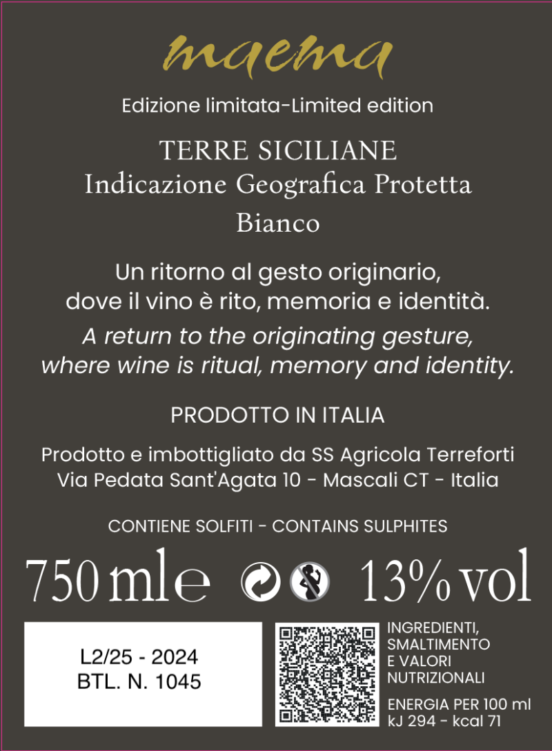 MAEMA Terre Siciliane Bianco IGP 2024 Limited edition